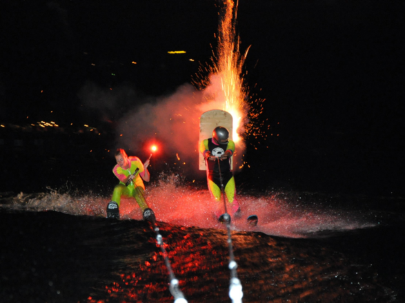 Nachtwasserskishow des WSC Seeboden im Seezentrum - Blumenpark. Eintritt frei! Bei Schlechtwetter findet die Veranstaltung immer am darauffolgenden Donnerstag statt.