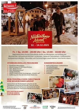 Stimmungsvoller Adventmarkt beginnend beim neuen Kunst-Eislaufplatz direkt am Marktplatz und entlang der Marktstraße. Weihnachtliche Leckereien, liebevoll Gebasteltes, traditionelle Handwerksprodukte, Gesundes und Gschmackiges, kleine Geschenks-Ideen ... - dazu das Angebot der Neukirchner Kaufleute in den schön geschmückten Geschäften - kulinarisch verwöhnen die Neukirchner Gastwirte.