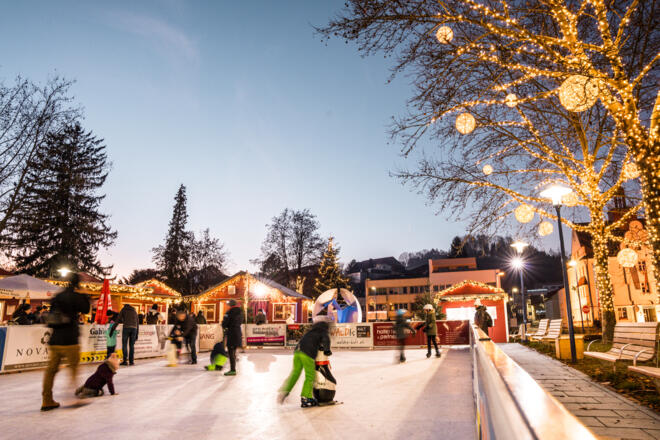 Indispensable to the Bad Schallerbach Winter Village and a highlight for the youngest visitors is the 200 square meter, climate-friendly artificial ice rink, located right in the town square for carefree ice skating fun. Thanks to 58 regional sponsoring partners, the ice rink has become an integral part of the Winter Village. For those who want to skate spontaneously, skating shoes in various sizes and blades are available for free rental on-site. Fun skating aids in the shape of a penguin and a polar bear help with the first steps on the artificial ice rink, ensuring that nothing stands in the way of carefree ice skating enjoyment.