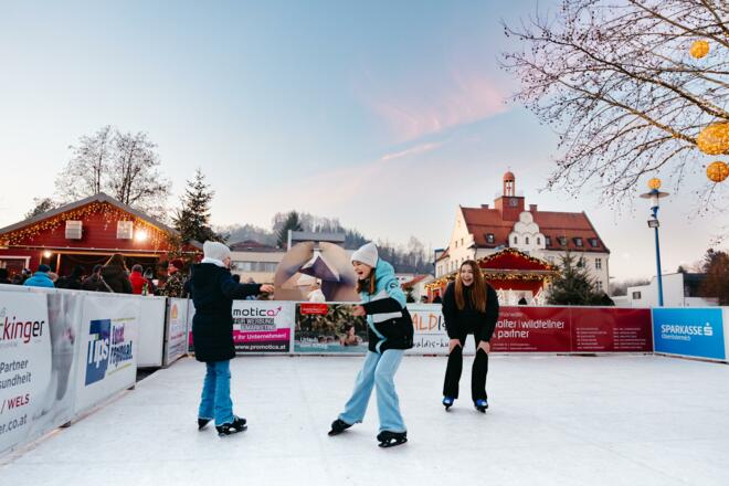 Nieodłącznym elementem zimowej wioski w Bad Schallerbachu i atrakcją dla najmłodszych gości jest powierzchnia lodowa o powierzchni 200 metrów kwadratowych, przyjazna dla klimatu, która znajduje się na rynku ratuszowym, zapewniając nieprzerwaną zabawę na łyżwach. Dzięki 58 regionalnym partnerom sponsorującym, lodowisko stało się stałym elementem zimowej wioski. Dla tych, którzy chcą spontanicznie pojeździć, na miejscu dostępne są łyżwy w różnych rozmiarach oraz łyżwy do wypożyczenia bezpłatnie. Zabawkowe pomoce do łyżwiarstwa w kształcie pingwina i niedźwiedzia polarnego wspierają w pierwszych krokach na lodowisku, dzięki czemu nic nie stoi na przeszkodzie beztroskiej przyjemności z jazdy na łyżwach.