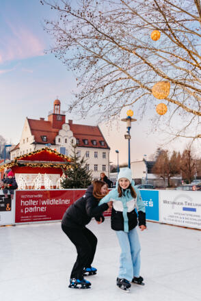 Dal Villaggio Invernale di Bad Schallerbach non può mancare ed è un punto culminante per i più piccoli visitatori l'area di pattinaggio su ghiaccio artificiale di 200 metri quadrati, che si trova in mezzo alla piazza del municipio e offre divertimento sul ghiaccio senza pensieri. Grazie a 58 partner sponsor regionali, la pista di pattinaggio è diventata parte integrante del villaggio invernale. Per coloro che vogliono pattinare all'improvviso, sono disponibili direttamente sul posto pattini di diverse misure in prestito gratuito. Le divertenti attrezzature per il pattinaggio a forma di pinguino e orso polare supportano i primi passi sulla superficie di ghiaccio artificiale, così niente ostacola il divertimento sul ghiaccio.