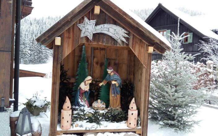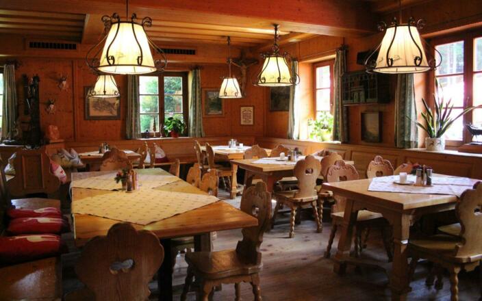 Nach dem Besuch der Kripperlausstellung mit kleinem Weihnachtsmarkt im ersten Stock werden in der gemütlichen Gaststube verschiedene Wurst-Gerichte serviert. Selbstverständlich stehen auch bodenständige Gerichte (Blaa Alm Schnitzel, Käsespatzen usw.) auf der Karte.