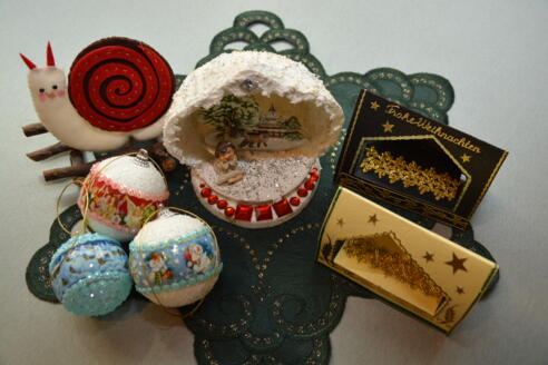 Unter Anleitung von Hanni Rächl werden weihnachtliche Schmuckstücke gebastelt