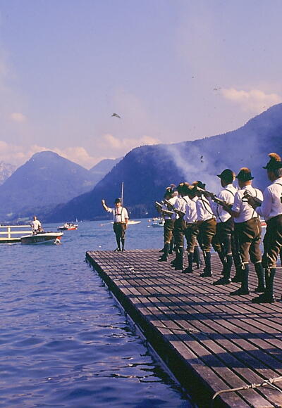 In St. Gilgen, Strobl und St. Wolfgang feuern die Prangerschützen traditionell Ihre Schüsse ab, verabschieden das alte Jahr und begrüßen laut das Neue.