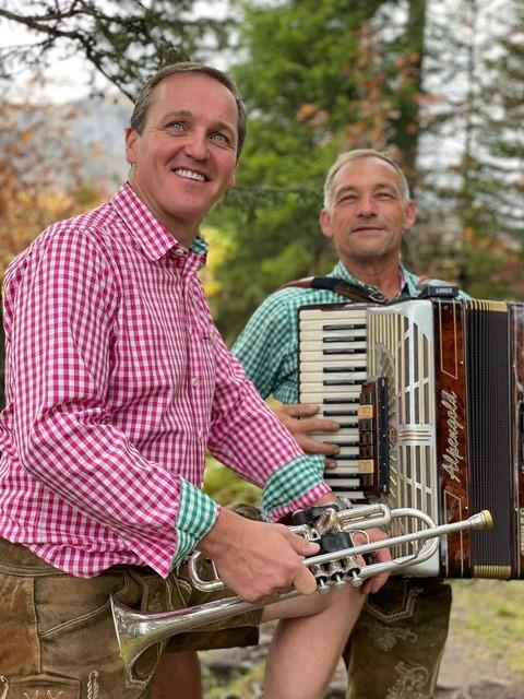 Freuen Sie sich auf coole Partymusik mit "Alpenstarkstrom" auf der großen Sonnenterrasse am Bergrestaurant Sonnenkopf.