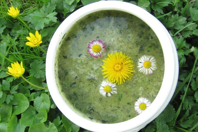 Wir werden bei einer kurzen Wanderung die frische Luft genießen und uns auf die Suche nach erstem Grün machen. So manche Kräuter begleiten uns den ganzen Winter und kündigen uns oft noch im Verborgenen den Frühling an. Die Inhaltsstoffe der Wildkräuter können unsere Abwehr stärken und Speisen mit Geschmack, Farbe und Vitalstoffen bereichern. In der Küche werden wir dann eine gehaltvolle, köstliche Kräutersuppe mit selbst gesammelten und mitgebrachten Kräutern kochen und mit Kräuterbrötchen genießen. Rezepte und Anleitungen sind im Beitrag inbegriffen.