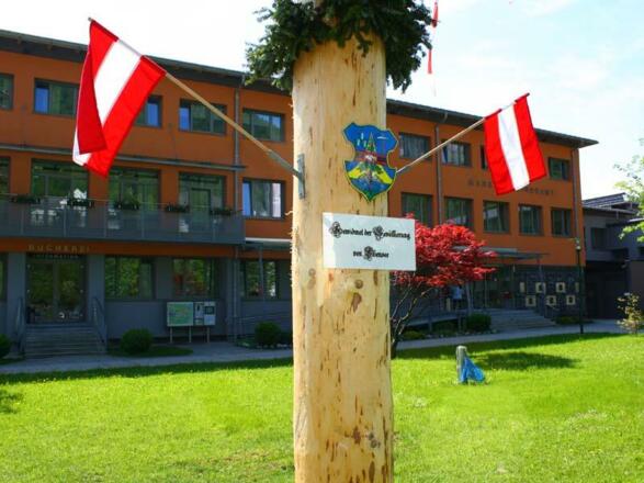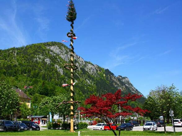 Vor dem Gemeindeamt wird mit musikalischer Umrahmung der Salinenmusik ab ca. 17 Uhr der Maibaum aufgestellt