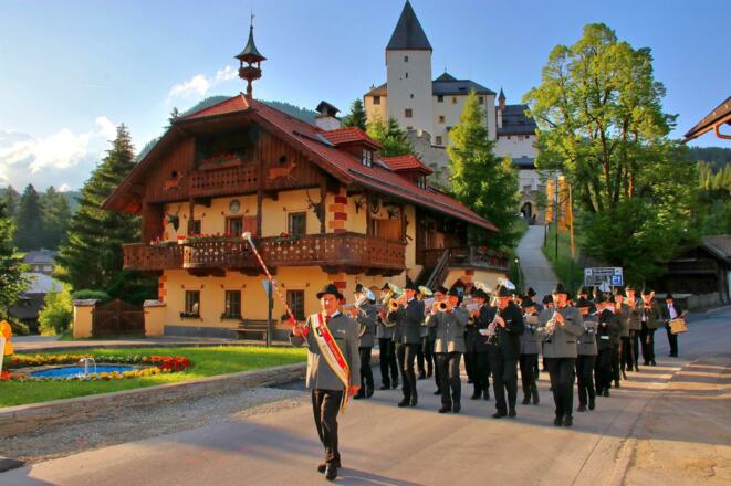 Platzkonzert der Bürgermusik Mauterndorf mit Jugendblasorchester beim Neuwirt Parkplatz