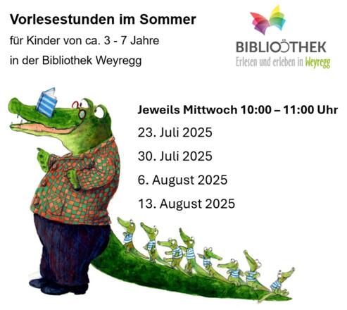 Vorlesestunde für Kinder in der Bibliothek Weyregg in den Sommerferien