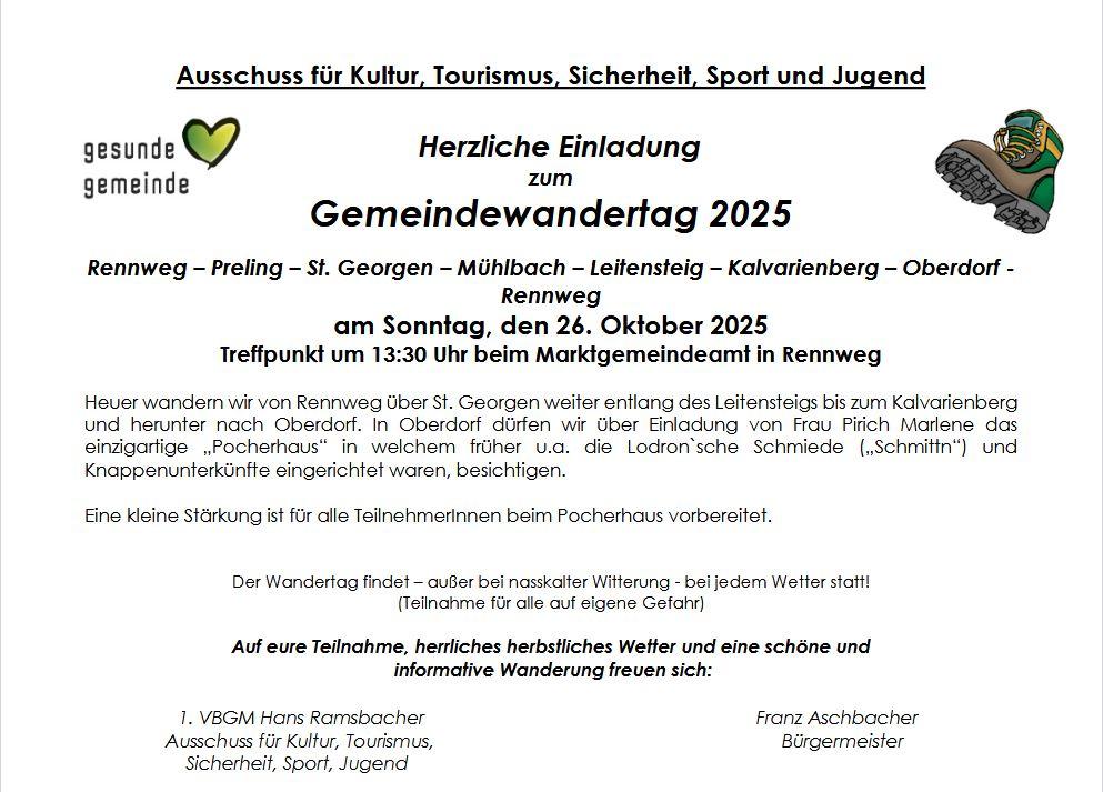 Treffpunkt um 13:30 Uhr beim Marktgemeindeamt in Rennweg