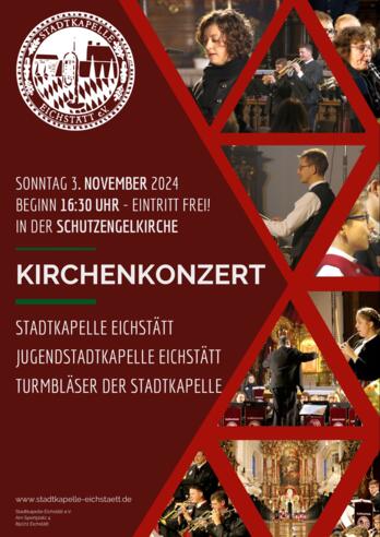 Im traditionellen Kirchenkonzert der Stadtkapelle Eichstätt bieten wir Ihnen Stücke von Barock bis in die Neuzeit.Die Stadtkapelle lädt herzlich ein, mit ihren Orchestern, den Turmbläsern, sowie der Jugendstadtkapelle eine gute Stunde aus der Welt des Alltags mit Ihnen zu entfliehen.