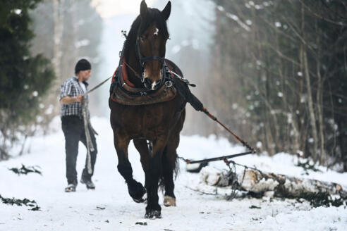 Waldbewirtschaftung durch Johannes mit seinem Pferd