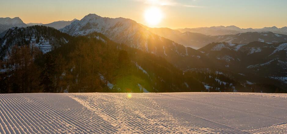 Beleef een onvergetelijke skidag in de vroege ochtenduren - met een adembenemende zonsopgang, je persoonlijke skigids en een heerlijk alpenontbijt.