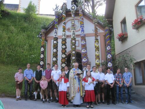 Die Prangstangen werden bei der Mesnerkapelle gesegnet und anschließend in die Kirche getragen, wo es eine Andachtsfeier gibt. Anschließend ladet der Pfarrgemeinderat vor dem Pfarrhof zur Agape ein.