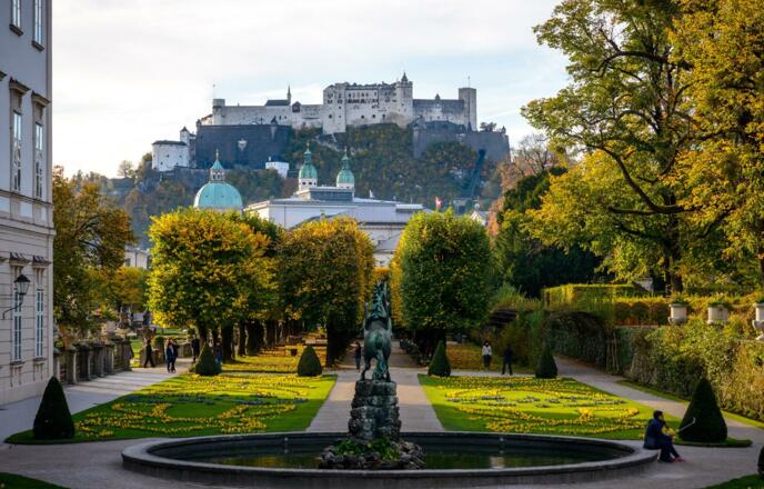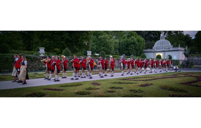 Von Anfang Mai bis Ende August verwandelt sich der Mirabellgarten regelmäßig in eine Open-Air-Bühne für Salzburger Blasmusikkapellen. Die Konzerte laden dazu ein, traditionelle Blasmusik in entspannter Atmosphäre neu zu entdecken – mitten im Herzen Salzburgs.