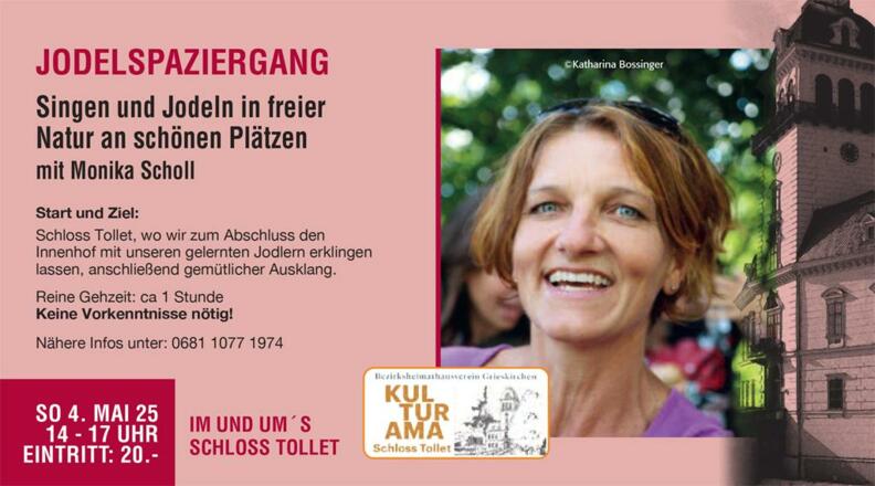 Start und Ziel: Schloss Tollet bei Grieskirchen, wo wir zum Abschluss den Innenhof mit unseren gelernten Jodlern erklingen lassen, anschließend gemütlicher Ausklang.