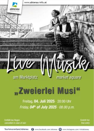 Der Marktplatz wird zur Tanzfläche. Es spielt die Gruppe "Zweierlei-Musik" ihre Kultsongs vergangener Zeiten. Eine Reise beginnend bei der Volksmusik über Austropop, Country bis hin zum Folk Rock/Pop und Stücken neueren Datums.