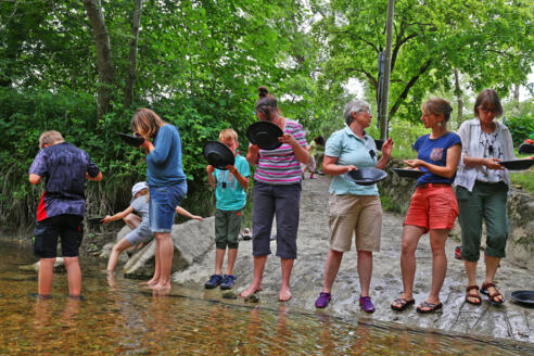 Wir ergründen das Geheimnis bunter Flusskiesel des Gebirgsbaches Prien durch 'Sieben und Schleifen'. Mit Schleifpapier und und Polierpulver staunen wir, wenn es den Kieseln ans 'Eingemachte' geht. Beim Waschen mit der Goldpfanne entdecken wir glitzernde Schwerminerale und Halbedelsteine. Die Kiesel verraten uns, wie die Alpen entstanden sind.