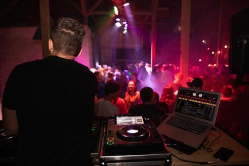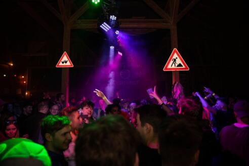 Beim Bauer am Weiher wird die Maschinenhalle zum Partystadl. DJ MF bringt die Tanzfläche zum Beben.