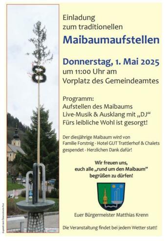 Der diesjährige Maibaum wird von Familie Forstnig - Hotel GUT Trattlerhof & Chalets