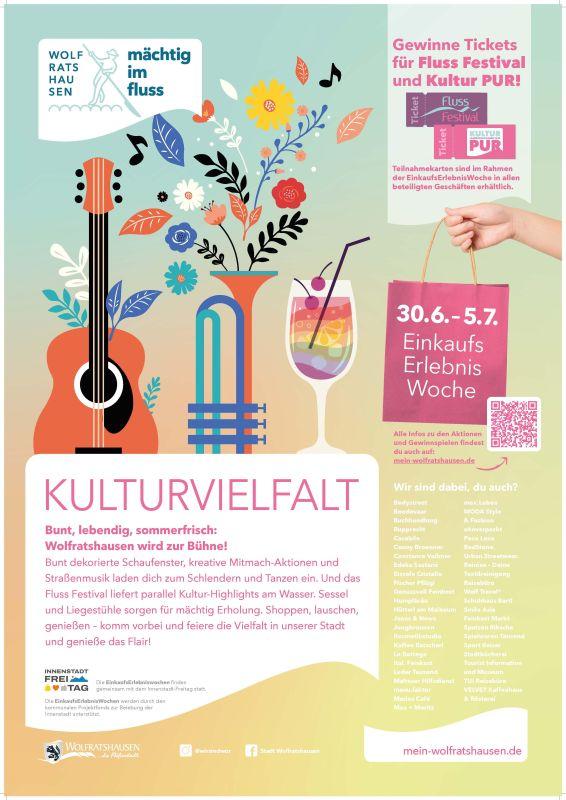 "Kulturvielfalt" EinkaufserlebniswocheIn 2025 finden zu wechselnden Themen vier EinkaufsErlebnisWochen statt. Dekorierte Schaufenster laden zum Bummeln ein. Attraktive Aktionen, mit Schwerpunkt auf Freitag & Samstag, bieten einen Mehrwert für den eigenen Aufenthalt.Mehr Informationen über die Einkaufserlebniswochen unter: https://www.mein-wolfratshausen.de/orte/category/aktionsgemeinschaft-innenstadt/