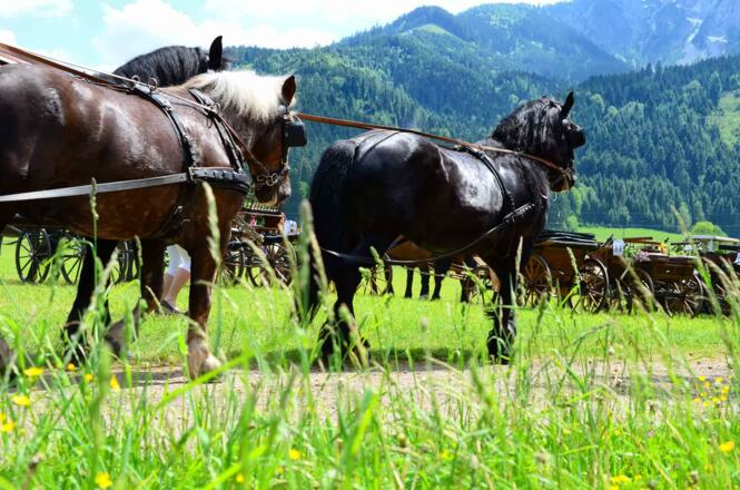 Besonders romantisch wird es bei einer Kutschenfahrt durch das idyllische Abtenau. Lehnen Sie sich bequem auf der Bank zurück und lassen Sie sich in aller Ruhe von der herrlichen Landschaft verzaubern.