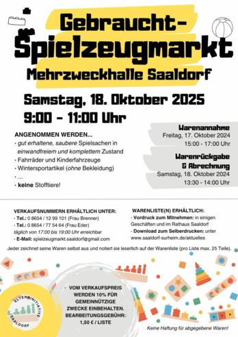 Wie jedes Jahr findet der gut sortierte Gebrauchtspielzeugmarkt in der Mehrzweckhalle Saaldorf statt.