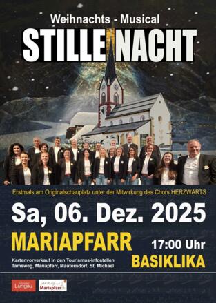 Das Stille Nacht Ensemble unter Mitwirkung des Chors HERZWÄRTS, umrahmt von einer beeindruckenden Lichtinszenierung, erzählt die Geschichte und Entstehung des "Stille Nacht, Heilige Nacht!" Liedes, zu dem Joseph Mohr 1816 in Mariapfarr den Liedtext verfasste.