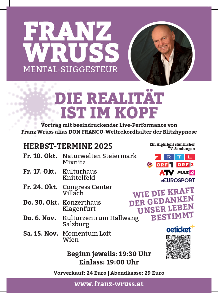 Franz Wruss besitzt eine besondere Begabung und mentale Fähigkeit, jedem Menschen zu helfen – ohne Hypnose.