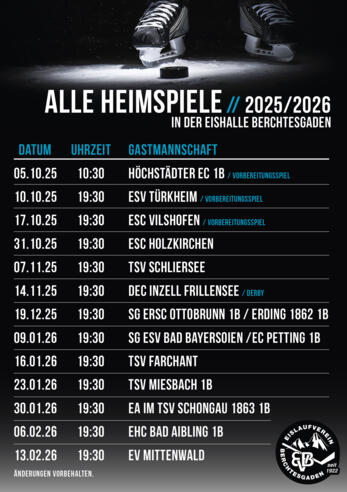 Lokalderby!!! Spannendes Heimspiel des EV Berchtesgaden in der Bezirksliga Süd. Die erste Mannschaft trifft auf den DEC Inzell Frillensee in der Eishalle in Berchtesgaden.