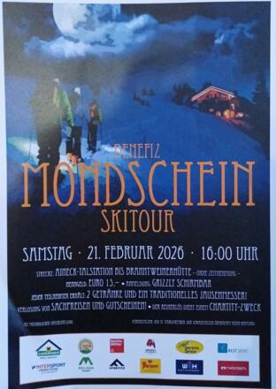 Auch heuer dürfen wir wieder zur Benefizmondscheinskitour in St.Margarethen einladen! Der Reinerlös dieser Veranstaltung dient einem karitativen Zweck. Die Anmeldung erfolgt ab 16:00 - 18:30 Uhr vor der Grizzly Schirmbar!