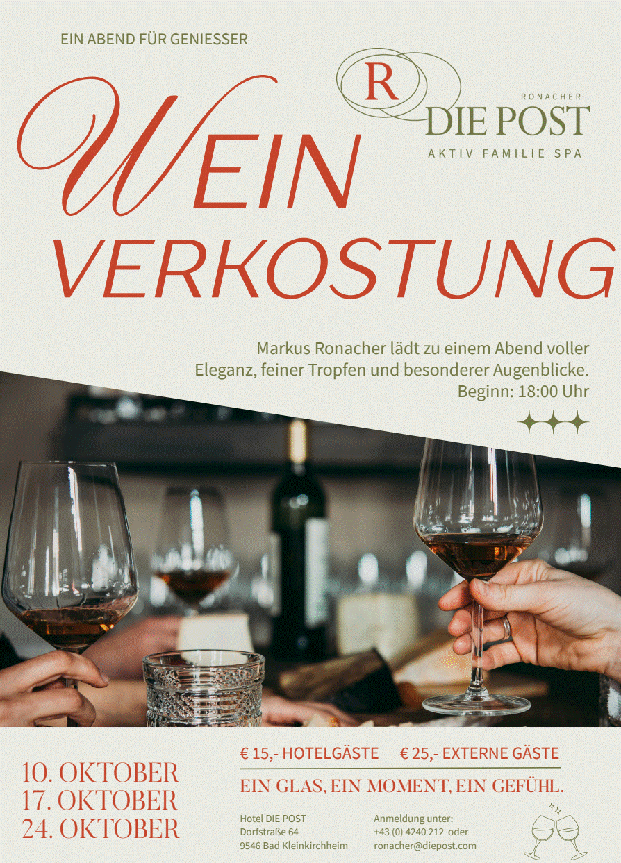 Markus Ronacher lädt zu einem Abend voller Eleganz, feiner Tropfen und besonderer Augenblicke.