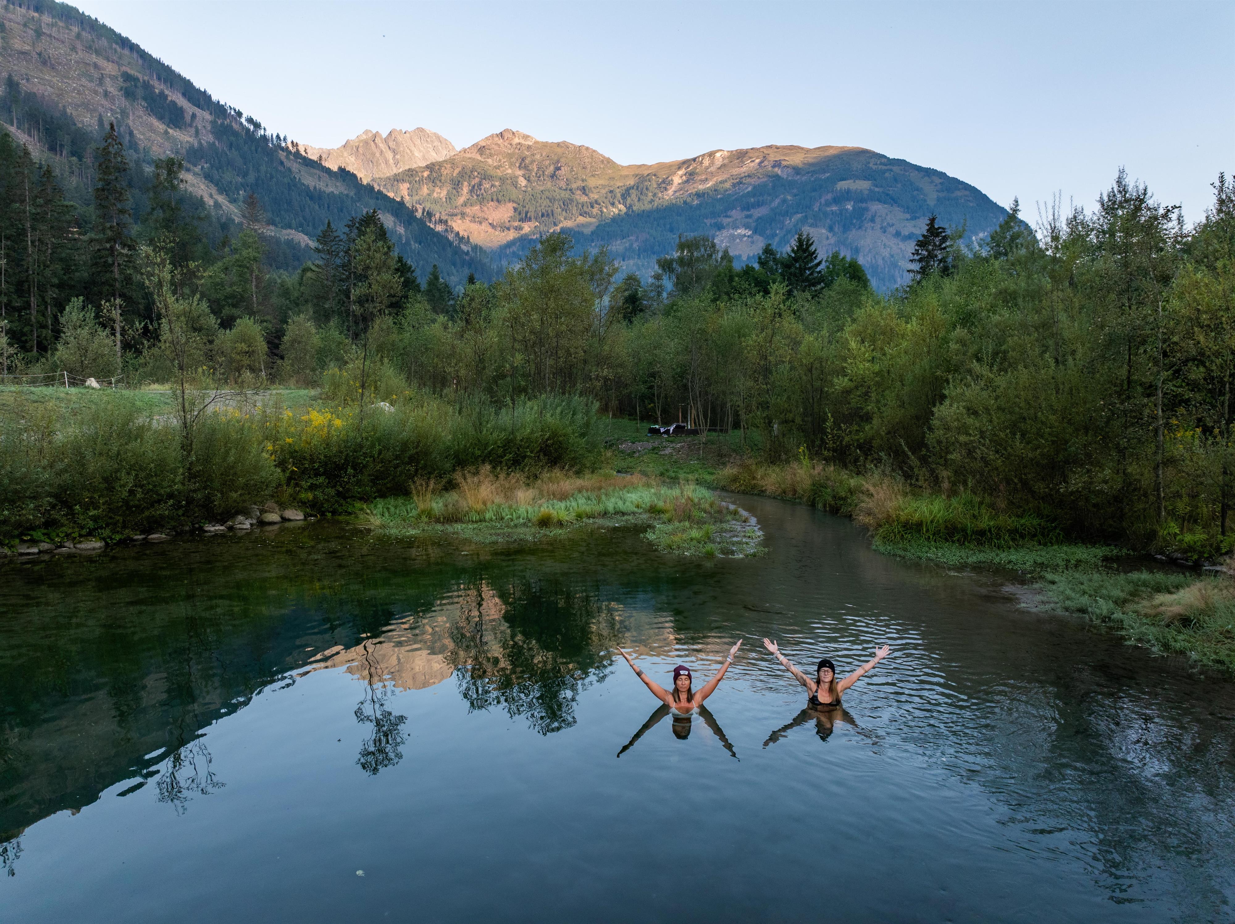 Ein Kaltwasserbad im Freien kann sehr belebend und gesundheitsfördernd sein. Nach einer kurzen Einführung und verschiedenen Atemübungen begibt man sich unter Anleitung von Guide Patrick zuerst ins flache, dann aber immer tiefer werdende Wasser des kleinen Teichs. Man trägt dabei Badekleidung, manche schützen Füße und Hände auch mit Neoprenschuhen und Neoprenhandschuhen, auch eine Mütze ist empfehlenswert. In der Regel dauert ein Kaltwasserbad nur wenige Minuten, oft zwischen 2 und 5 Minuten. Es geht nicht darum, wie lange man im Wasser bleibt, sondern darum, den positiven Effekt der Kälte zu nutzen, ohne den Körper zu überfordern. Achten Sie auf Ihr Körpergefühl. Sobald Sie sich unangenehm oder zu kalt fühlen, ist es Zeit, das Wasser zu verlassen. Nach dem Verlassen des Wassers sollten Sie sich sofort abtrocknen und warme Kleidung anziehen, um den Körper wieder aufzuwärmen. Es ist auch hilfreich, eine warme Flüssigkeit wie Tee zu trinken.