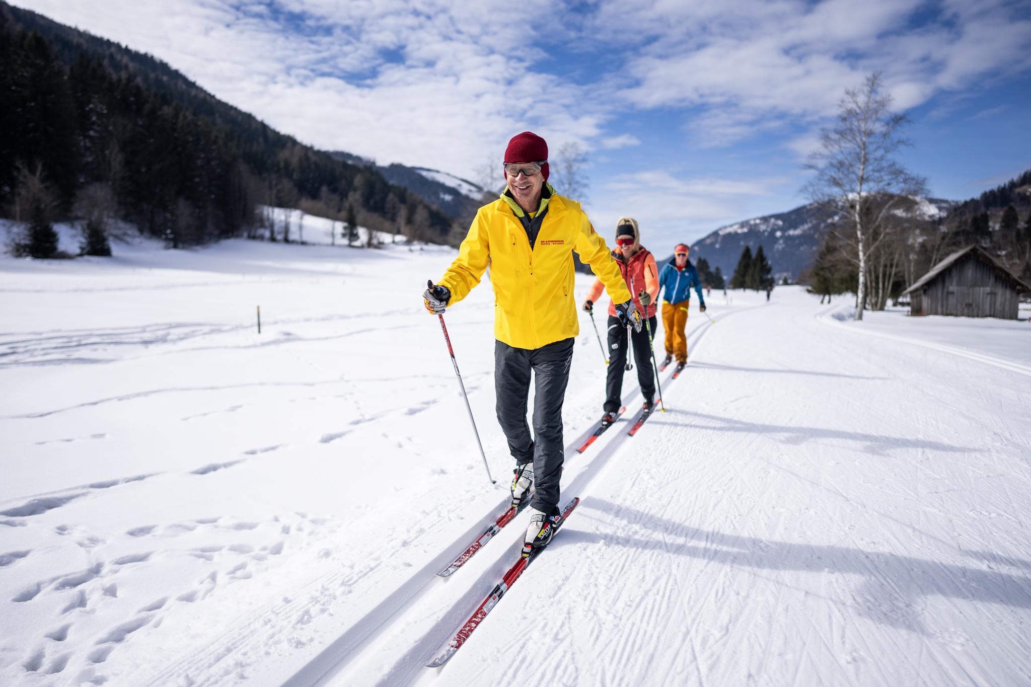 Schnupperstunden für AnfängerInnen auf der Römerloipe in Bad Kleinkirchheim mit Einschulung und Techniktraining durch zertifizierte Wintersportguides. Nur für Erwachsene. Inklusive Loipenkarte, exklusive Langlaufausrüstung. Verleih um € 22,–/Pers.