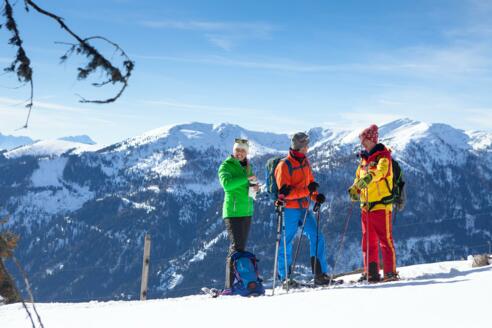 Schneeschuhwanderung im Bereich Bad Kleinkirchheim Maibrunn mit zertifizierten Wintersportguides - auch für Kinder ab 8 Jahren. Festes Schuhwerk und warme Bekleidung. Exklusive Schneeschuhe und Liftkarte. Schneeschuh Verleih um € 13,–/Pers. möglich.