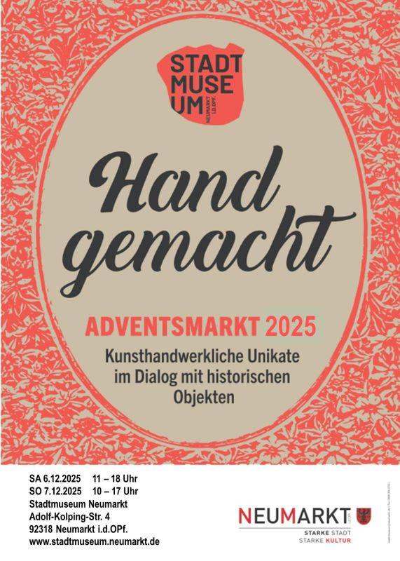 Kunsthandwerkliche Unikate im Dialog mit historischen Objekten.Immer am 2. Adventswochenende im Dezember findet im Neumarkter Stadtmuseum in der Adolf-Kolping-Straße samstags und sonntags auf drei Etagen ein exklusiver Weihnachtsmarkt statt.Angeboten wird Außergewöhnliches, Einzigartiges, Charmantes und Edles aus allerlei Bereichen. Aus traditionellen Werkstoffen wie Holz, Papier, Glas, Keramik, Porzellan sowie dem Bereich der Textil- und Goldschmiedekunst werden gepaart mit modernem, handwerklich fundiertem Design individuell gestaltete Präsenteangeboten.Vertreten sind bevorzugt Kunsthandwerker aus der Region, so dass der Adventsmarkt zum Potpourri an wunderbaren Erzeugnissen wird, die kreative Köpfe und flinke Hände in und rund um Neumarkt zu leisten imstande sind.Bewerbungsformular: https://www.neumarkt.de/media/11098/stadtmuseum-bewerbung-adventsmarkt-2025.pdfTeilnahmebedingungen: https://www.neumarkt.de/media/11099/stadtmuseum-teilnahmebedingungen-adventsmarkt-2025.pdf