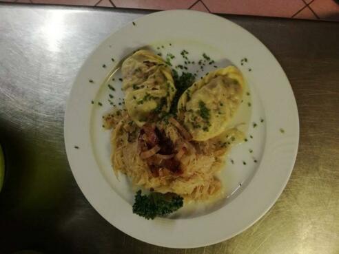 Traditionelles Specknudelessen beim Landgasthof Weilharter.