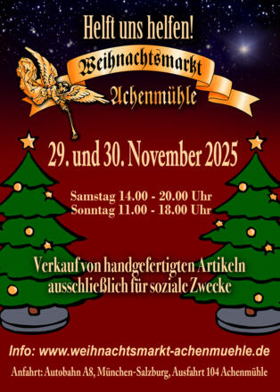 12. Weihnachtsmarkt Achenmühle – 35 Jahre gelebte Solidarität und Weihnachtsfreude am Samstag, 29. und Sonntag, 30.November 2025