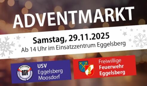 Zum Anbruch der Adventszeit veranstalten die Freiwillige Feuerwehr und der USV Eggelsberg einen Adventmarkt. Dieser findet am Samstag, den 29. November ab 14 Uhr beim Einsatzzentrum in Eggelsberg statt.