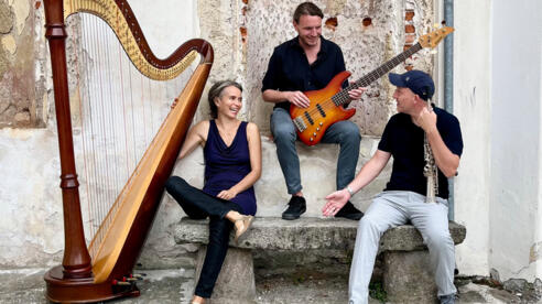 Obwohl schon in der Bibel behauptet wird, es gäbe nichts Neues unter der Sonne, konnte selbst in den Weiten des Internets kein Ensemble in der Besetzung Harfe, Saxophon und E-Bass ausfindig gemacht werden. Diesem Missstand Rechnung tragend, haben sich die drei Musiker*Innen zusammengefunden ihren eigenen musikalischen Kosmos zu kreieren. Mit Stücken, die zwischen kammermusikalischer Detailverliebtheit, jazzgeprägtem Feeling und freiem Ausdruck hin- und herpendeln werden die Möglichkeiten des Instrumentariums spielerisch ausgelotet.
