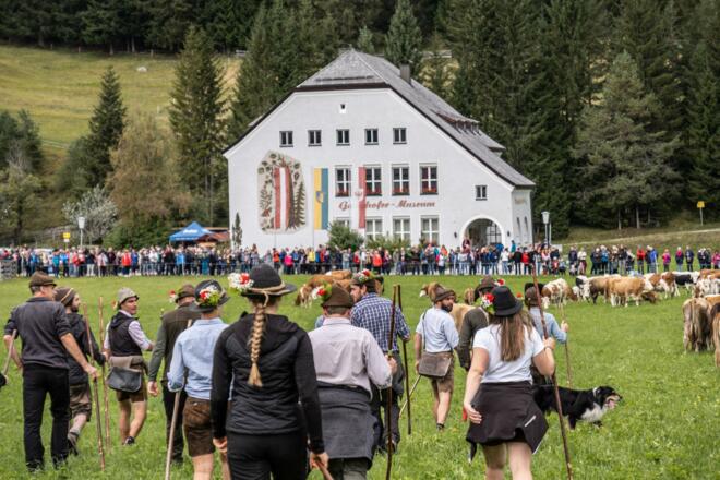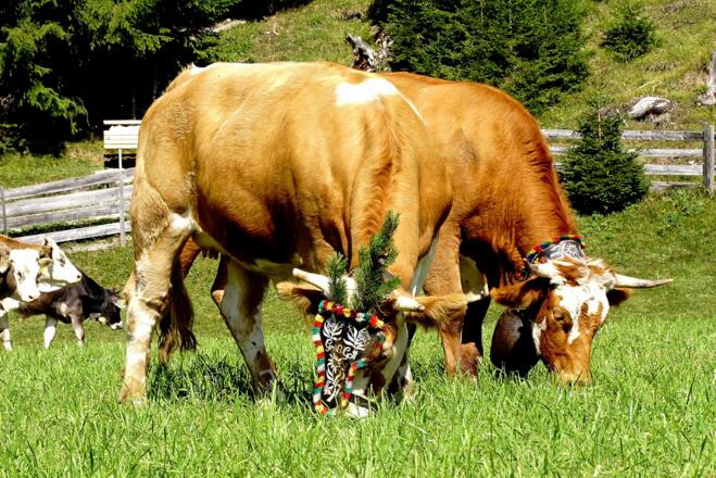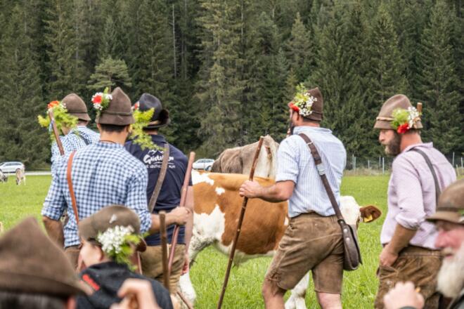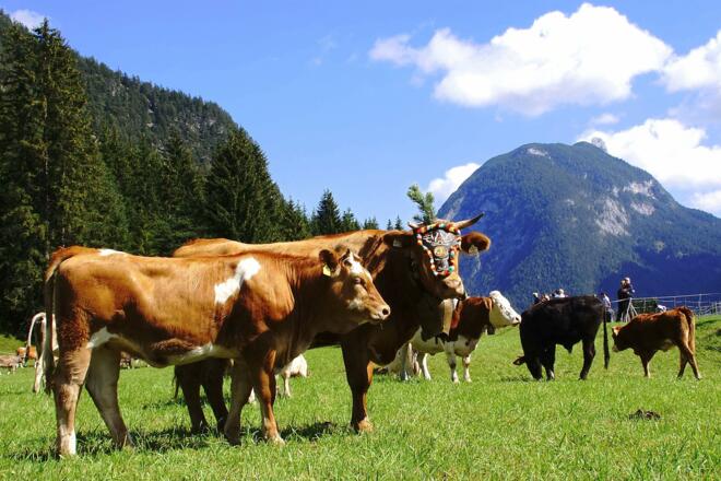 Beim Almabtrieb in Leutasch wird die Rückkehr der Kühe von der Alm gefeiert.