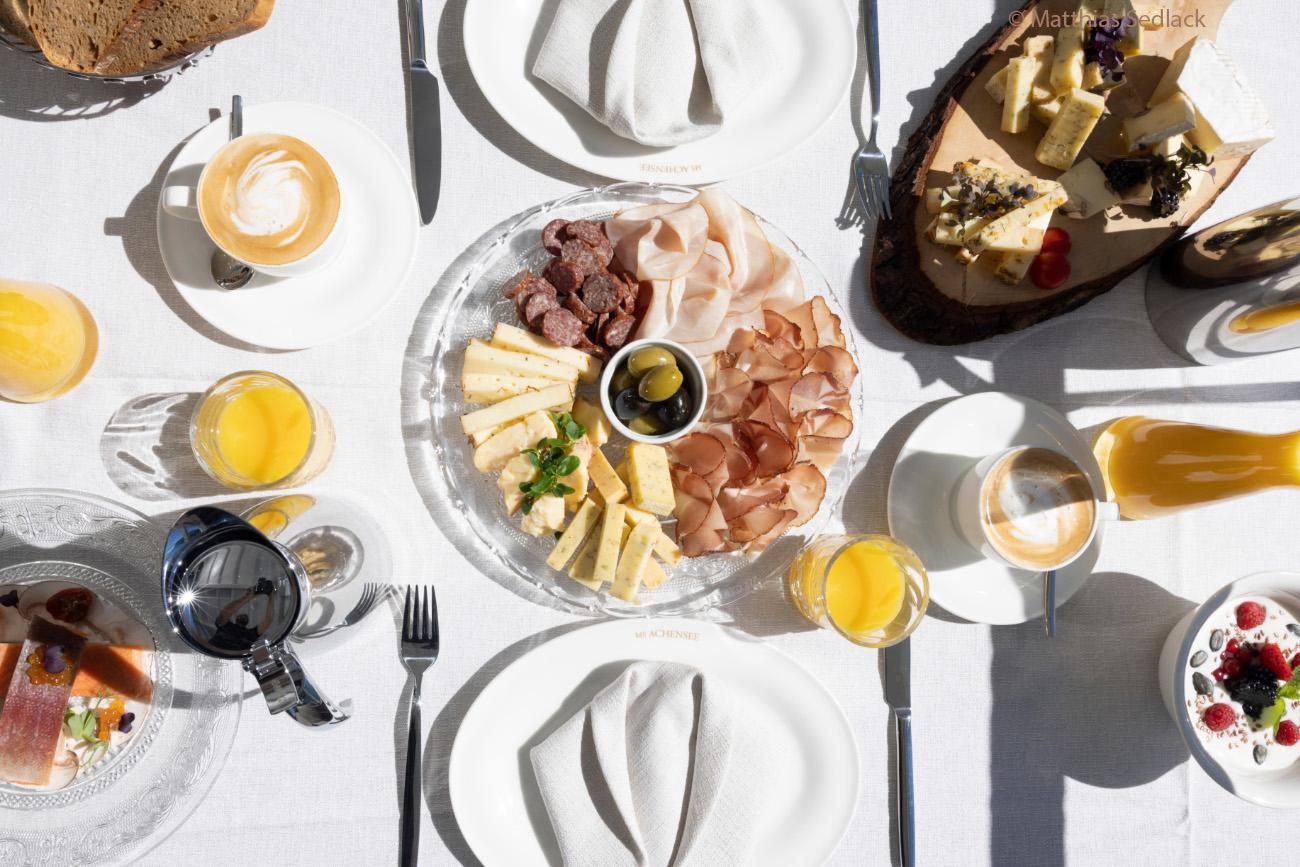 Genießt aus vollem Herzen und in gemütlicher Atmosphäre das sagenhafte Frühstücks- und Lunchbuffet mit Achensee-Blick.