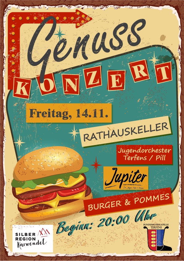 Burger-Genusskonzert der BMK Terfens, musikalisch umrahmt vom Jugendorchester Terfens/Pill und von Jupiter.
