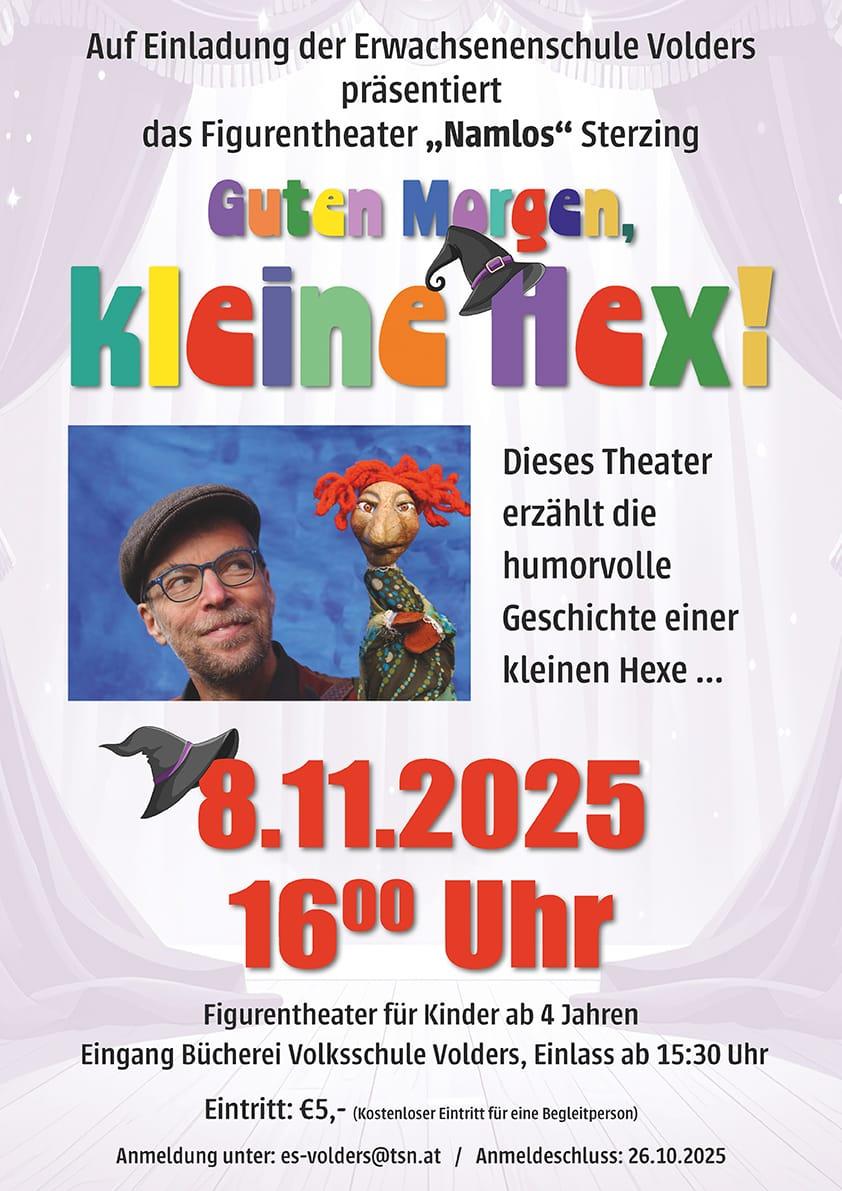 Die ES Volders ladet zum Figurentheater für Kinder (kommt aus Südtirol) ein.
