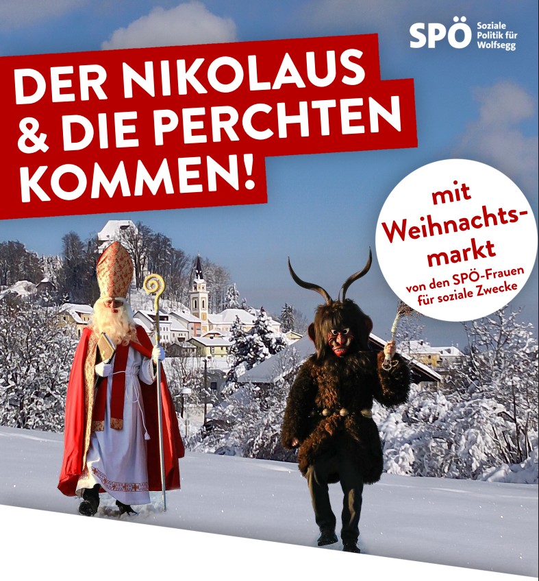 Der Nikolaus kommt um 18:00 Uhr und die Wolfsegger Waldteufel um 19:00 Uhr.