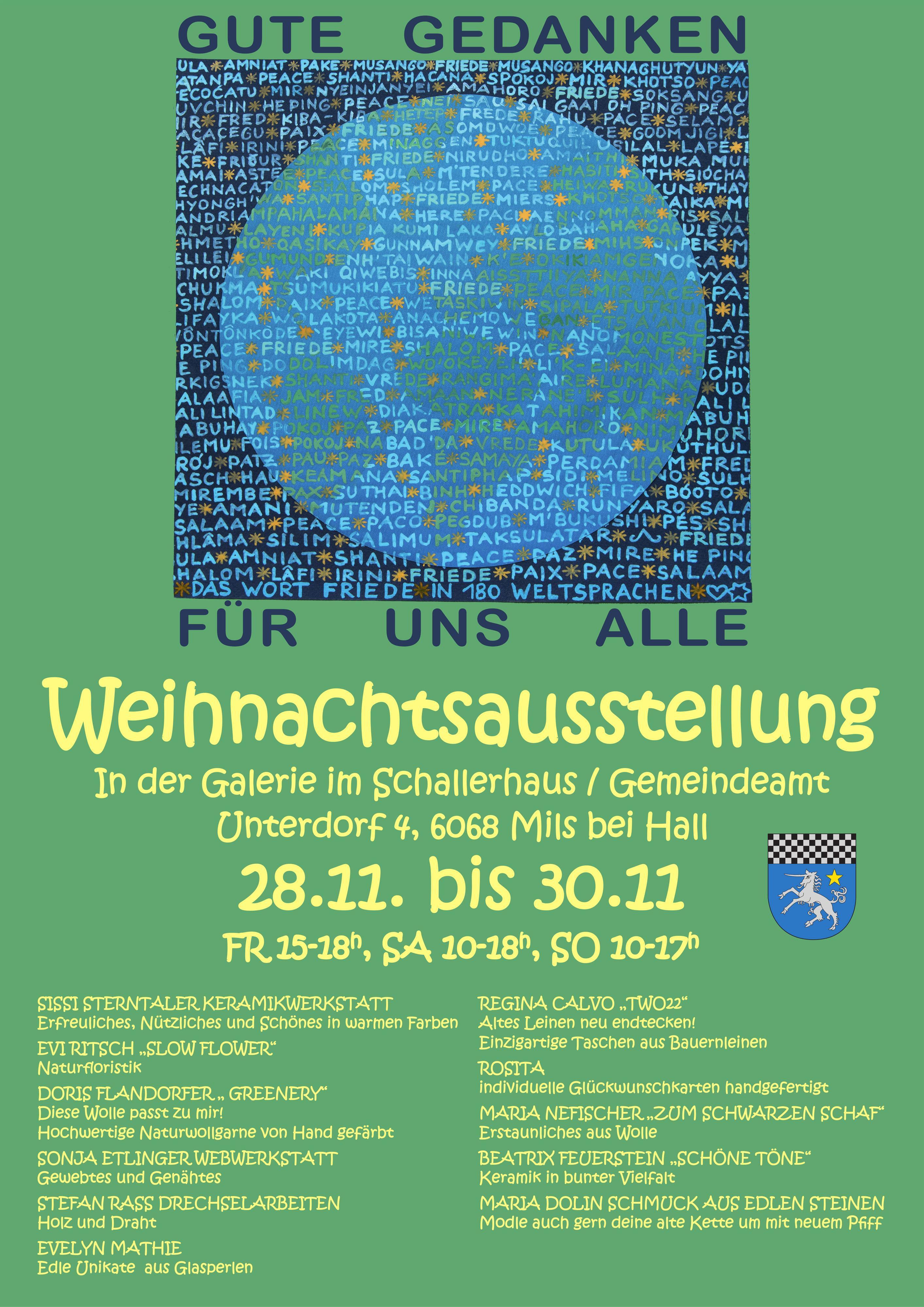 Sissi Sterntaler und Partner präsentieren in der Galerie im Schallerhaus (Gemeindeamt) wieder eine exklusive Auswahl an handgemachten Produkten wie Keramik, Holzarbeiten, Textilien, Floristik und Schmuck.