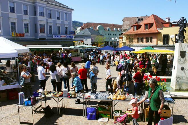 Erleben Sie jeden Freitag von 08:00 bis 13:00 Uhr den charmanten Wochenmarkt im Herzen von Ferlach, umgeben von der malerischen Kulisse des südlichen Kärntens.