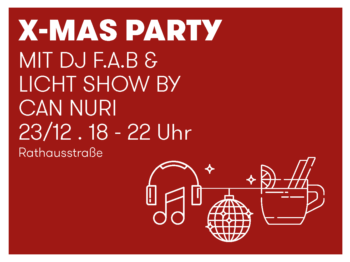 Am 23. Dezember wird am letzten Tag des Weihnachtsmarkts noch einmal richtig gefeiert! Die Gastronomie bleibt bis 22.00 Uhr geöffnet und es gibt Musik zum Tanzen und Feiern. Erleben Sie die wohl größte X-Mas Open Air Party Vorarlbergs. Kommen Sie vorbei und feiern mit uns!
