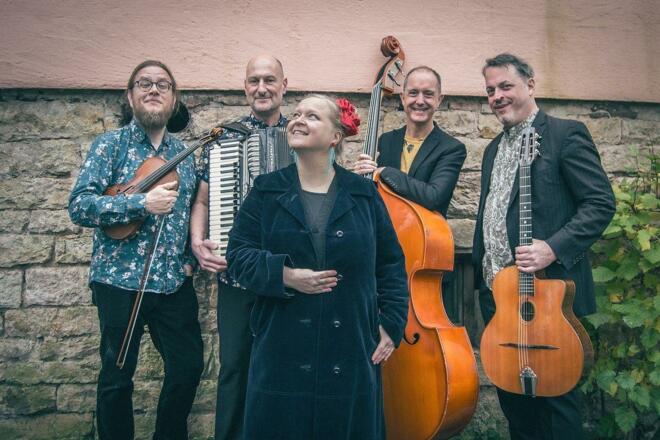 Uusikuu (New Moon) was founded in 2006 with the ambitious goal of revitalizing traditional Finnish tango. With their typically melancholic tango vibes, the lively world music quintet has nothing to do with that (or with the knitted cap). The small orchestra, which describes its style as “Vintage Sounds of Finland,” admirably bows to the traditional Finnish entertainment music of the 1930s to 1960s. They are not content to tread in place but even venture briefly into the famous 70s and 80s. And since Uusikuu are huge fans of the Eurovision Song Contest, references to the legendary music competition are a must.