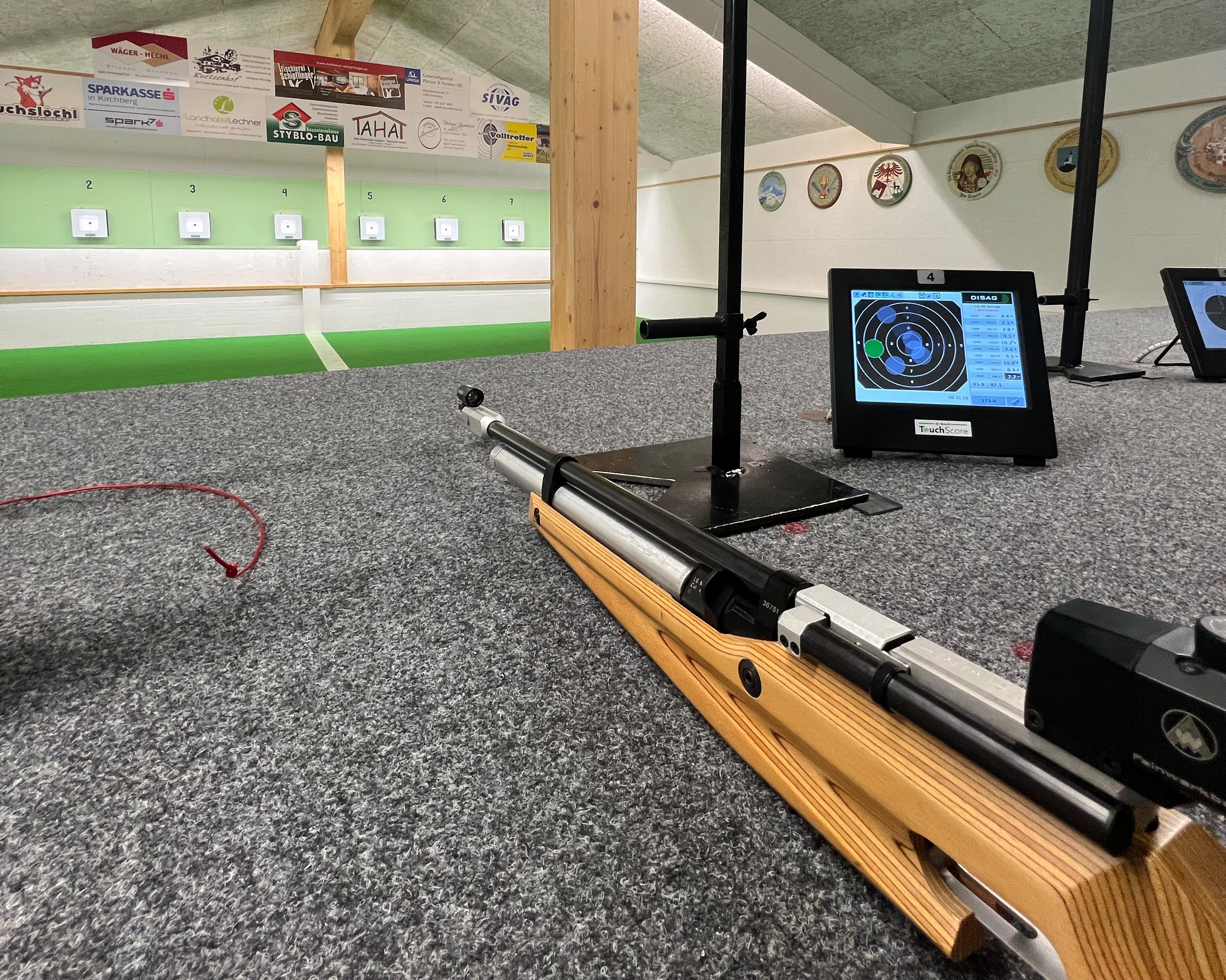 Beim Luftgewehrschießen wird auf Scheiben geschossen und mit etwas Trefferglück mit einem Abzeichen in Bronze, Silber oder Gold belohnt.